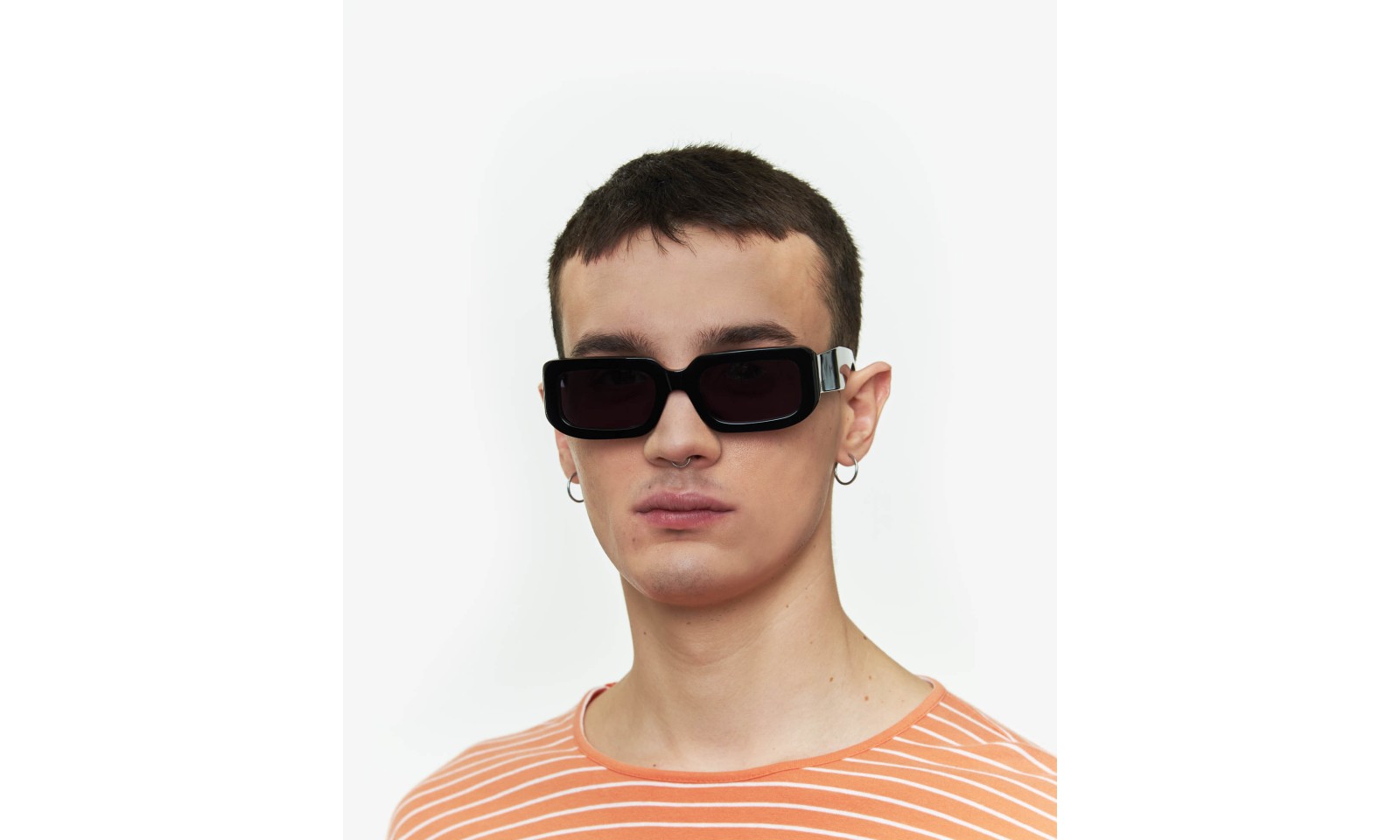 - Χειροποίητα γυαλιά ηλίου με γυαλιστερό μαύρο σκελετό και μαύρους φακούς